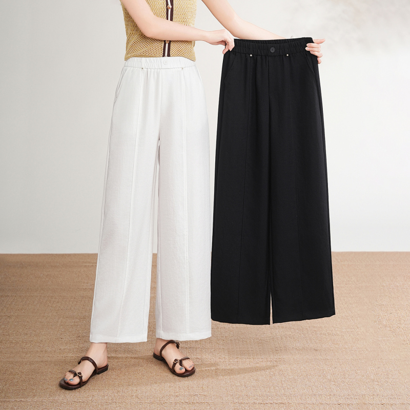 女士亚麻九分阔腿裤