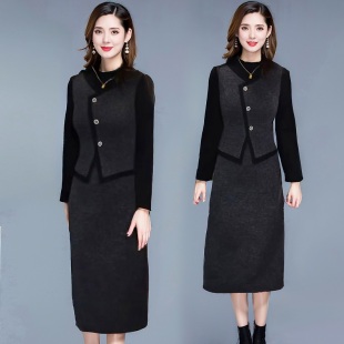 女士时尚假两件连衣裙