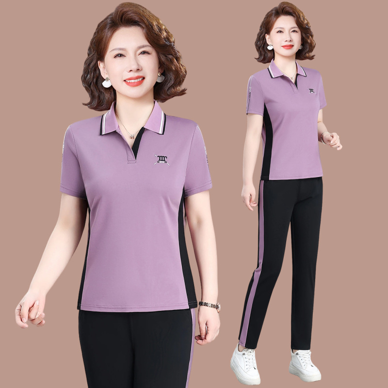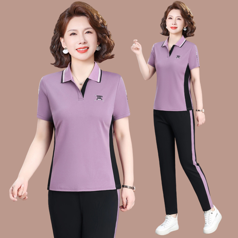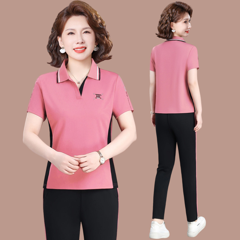 2608中老年女士休闲套装短袖批发价100