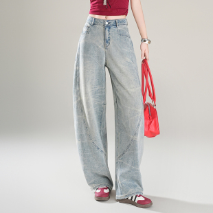 女士时尚宽松弯刀牛仔裤