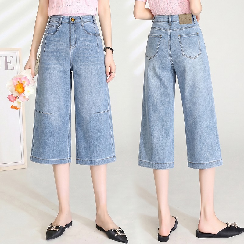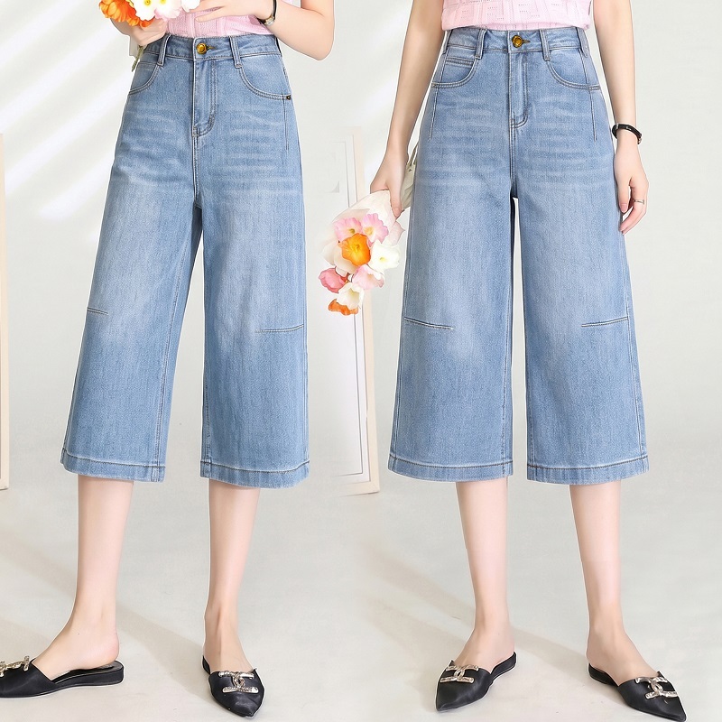 女士时尚阔腿牛仔裤