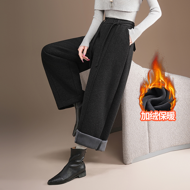 女士时尚加绒阔腿裤