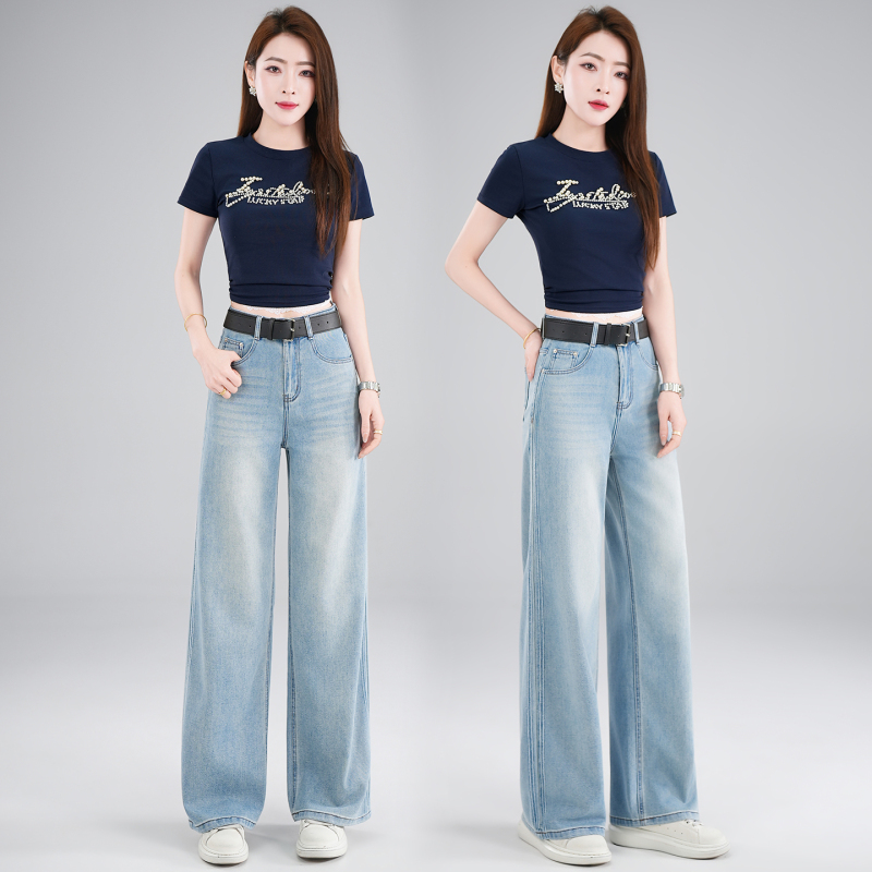 女士时尚阔腿牛仔裤