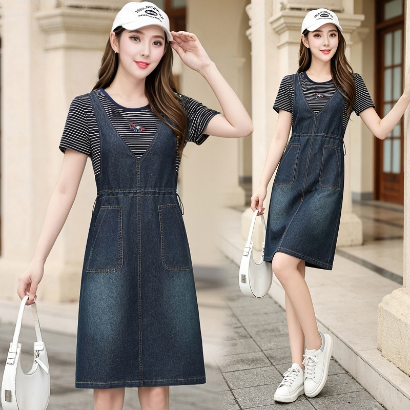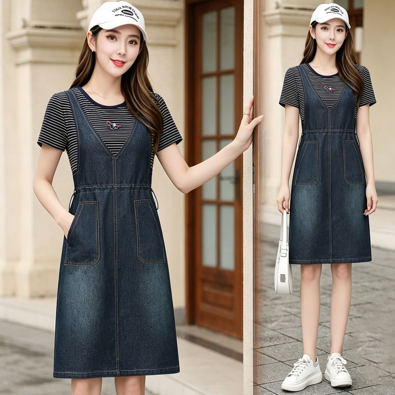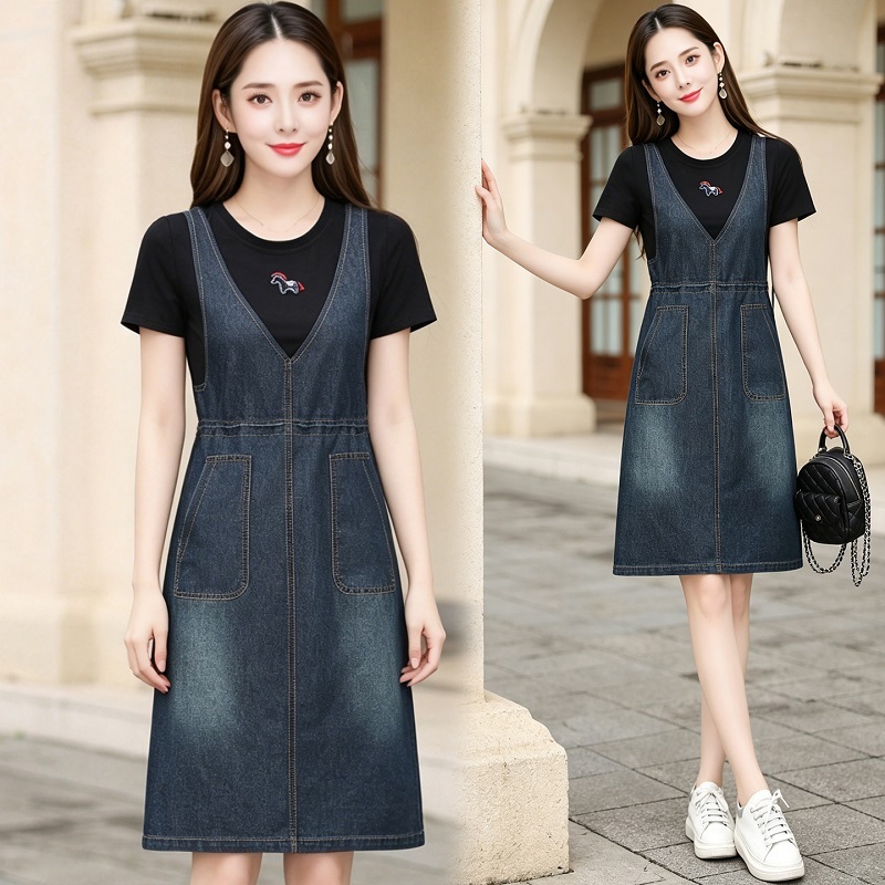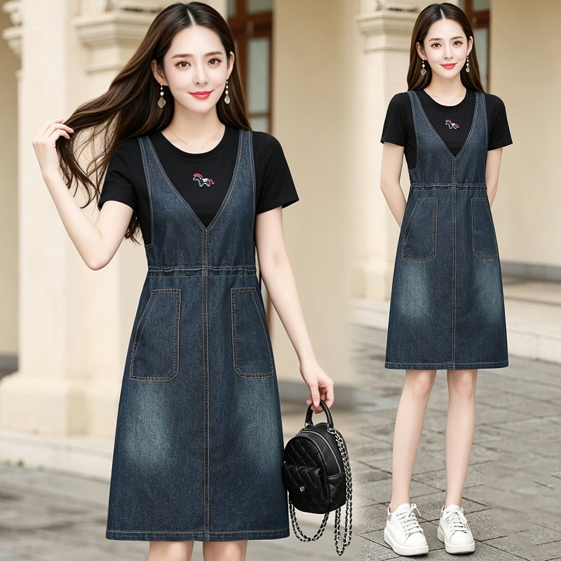 女士假两件牛仔裙