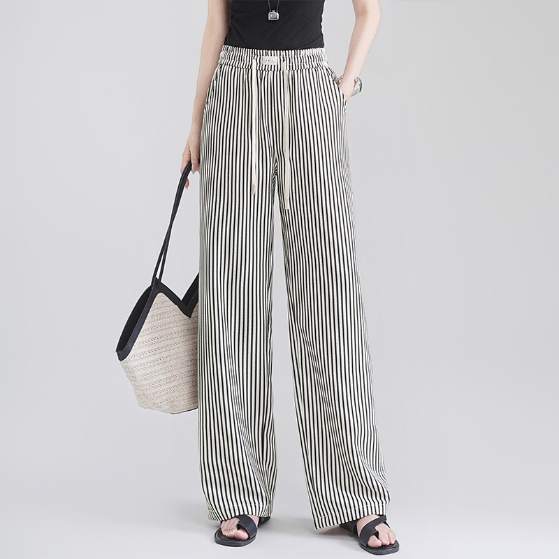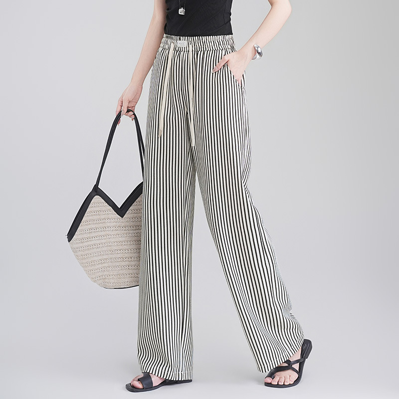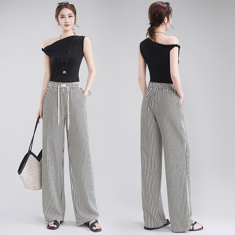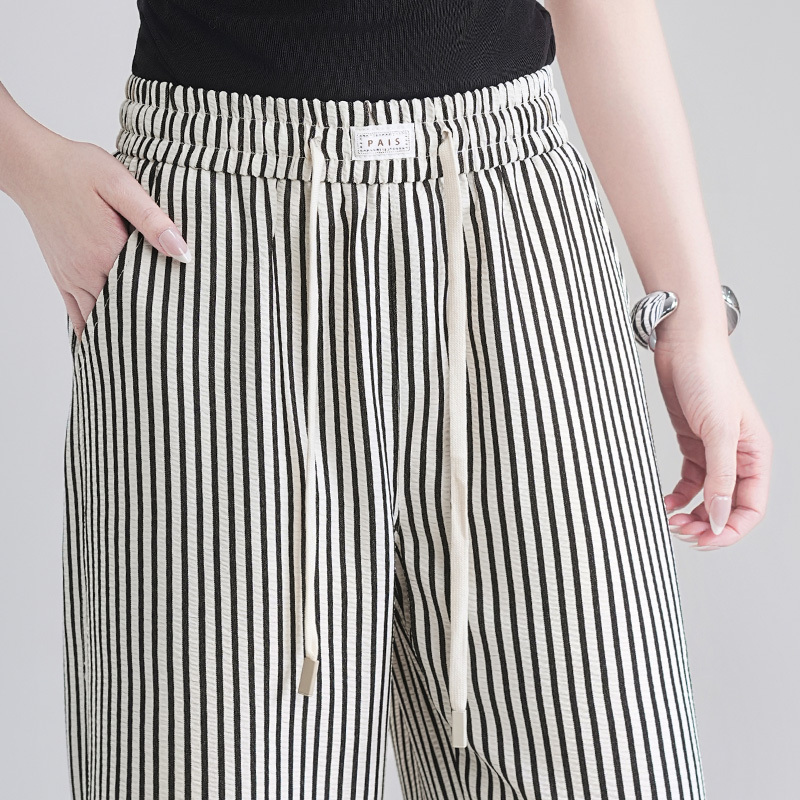 女士时尚条纹阔腿裤
