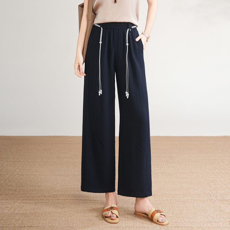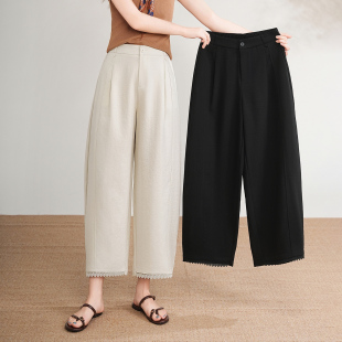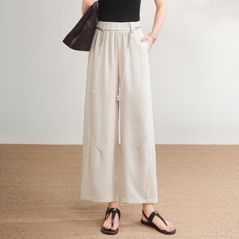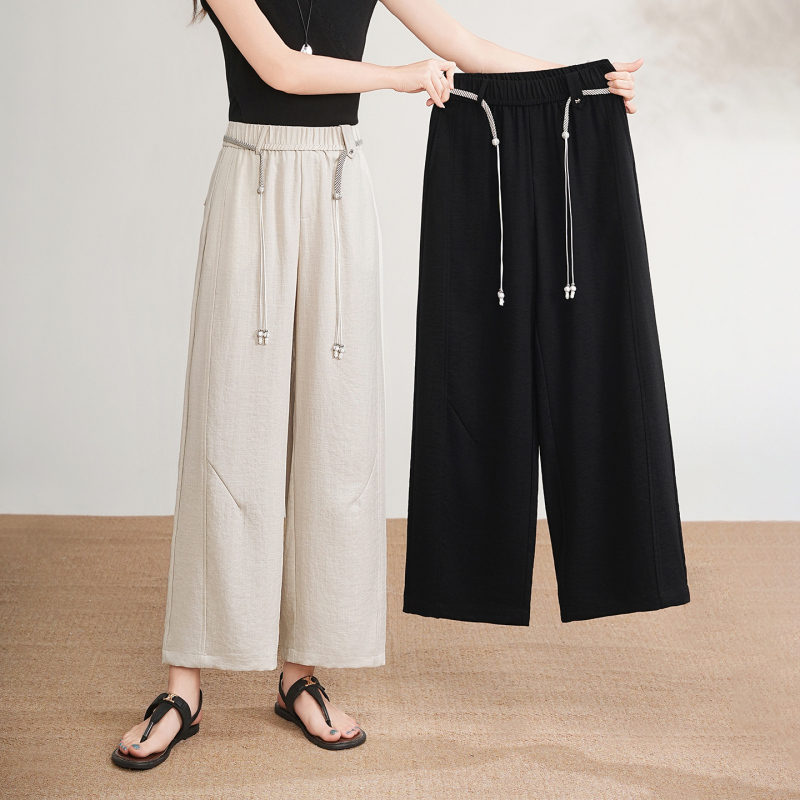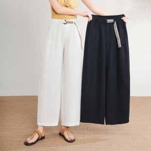女士亚麻九分阔腿裤
